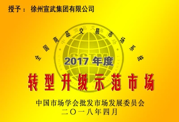 4月24日,公司被中國市場學會批發市場發展委員會授予2017年度全國商品交易市場系統轉型升級示范市場稱號。黨委書記、董事長、總經理李旭昇獲2017年度全國商品交易市場系統功勛人物稱號。公司轉型升級經驗,在全國予以推廣。